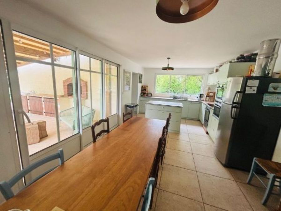 Située à Frossay, à l’abri de toute nuisance, cette longère en pierre bénéficie d’un environnement rare, à la fois préservé et accessible. À seulement quelques minutes à pied, par un charmant sentier, le cœur du village offre commerces de proximité et école. Une extension réalisée en 2021 a permis d’apporter davantage de volume et de fonctionnalité à la longère. La maison d’environ 154 m2 habitables sur 2 niveaux comprend une entrée accueillante, une cuisine lumineuse ouverte sur la terrasse, un vaste salon avec cheminée à insert, 4 chambres, 2 salles de bain, un bureau, une buanderie et un garage attenant. Le terrain d’environ 5 000 m2 constitue un véritable atout patrimonial, cour à l’avant permettant le stationnement de plusieurs véhicules, jardin arboré à l’arrière, soigneusement entretenu, grande terrasse propice aux réceptions estivales, piscine rénovée.